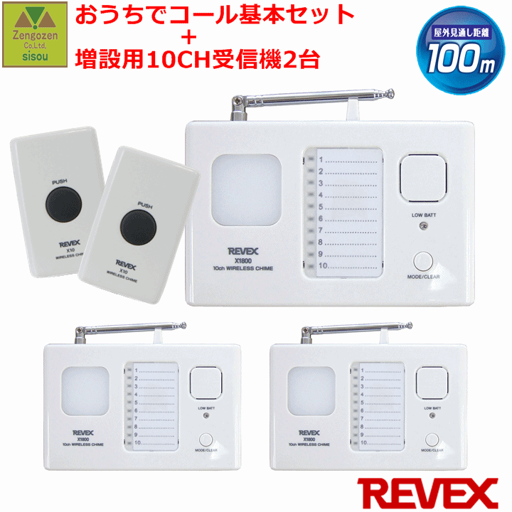 おうちでコール+増設用10CH受信チャイム2台【呼び出しチャイム チャイム ナースコール ワイヤレス チャイム 呼び出しベル コールチャイム コードレスチャイム 呼出ベル 呼び出しボタン 呼出ボタン 卓上コール ワイヤレス インターフォン 呼び鈴 リーベックス】