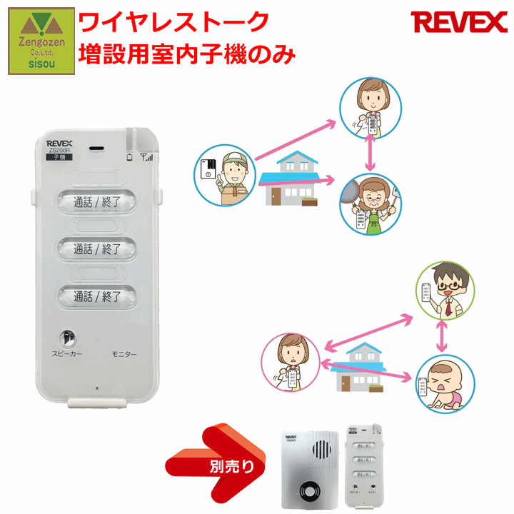 リーベックス ワイヤレストーク 増設用室内子機(ZS200R)【在宅 チャイム ナースコール インターホン ベル 介護用 呼び鈴 コードレス 家庭用 電池式 ワイヤレス 無線 呼び出し 報知 話せるインターホン 配線不要 リーベックス】